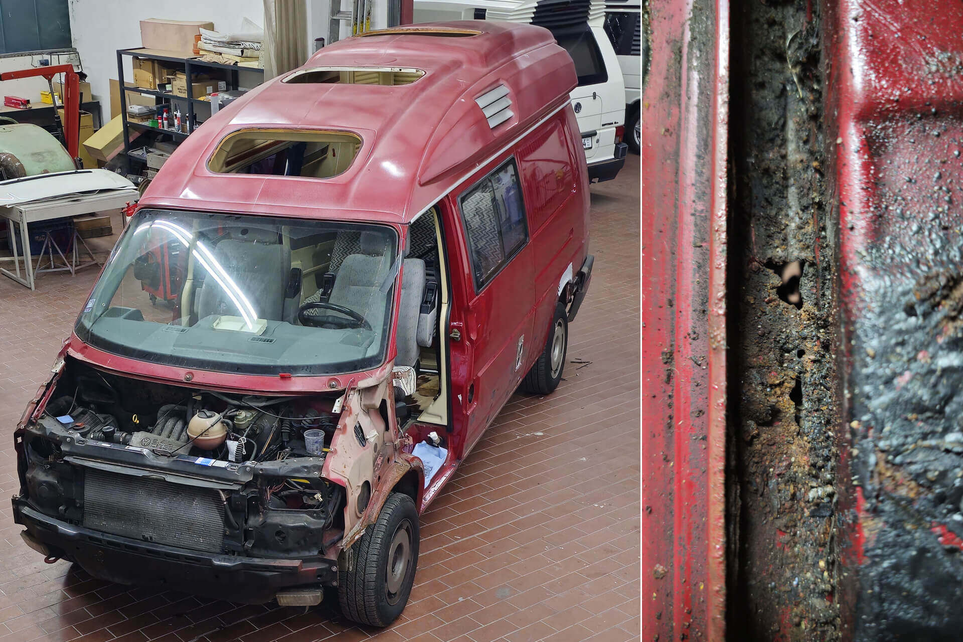 Behandlung der Gelcoatschäden an Heckansatz und Dach
